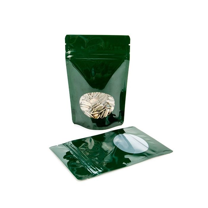 Hunter Green Stand Up Zipper Pouch Bags w/Oval Window, 4" x 2 3/8" x 6" (100 Pieces)