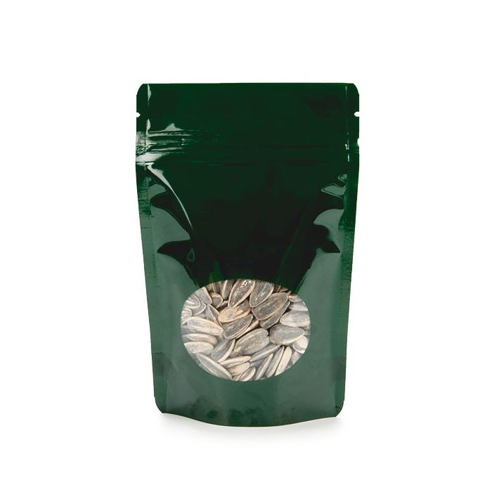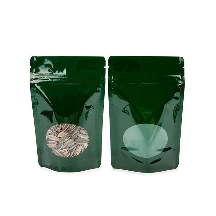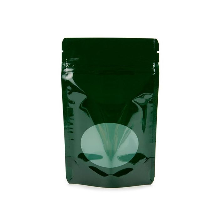 This 4" x 2 3/8" x 6" Hunter Green Stand Up Zipper Pouch is ideal for food packaging. With a clear oval window, this self-supporting pouch, will allow your product to be seen by customers. ZBGO2HG holds 2oz/57g (based on whole coffee beans), which means it is perfect for smaller items like candies, chocolates, pasta or granola. Our oval window zipper pouch bags are made of a strong laminated material for added strength and barrier. The strong resealable zipper will allow contents to stay fresher, longer. For the retail environment, this pouch can be heat sealed. Tear notches provide convenient access for customers, once it has been purchased. Food Safe.