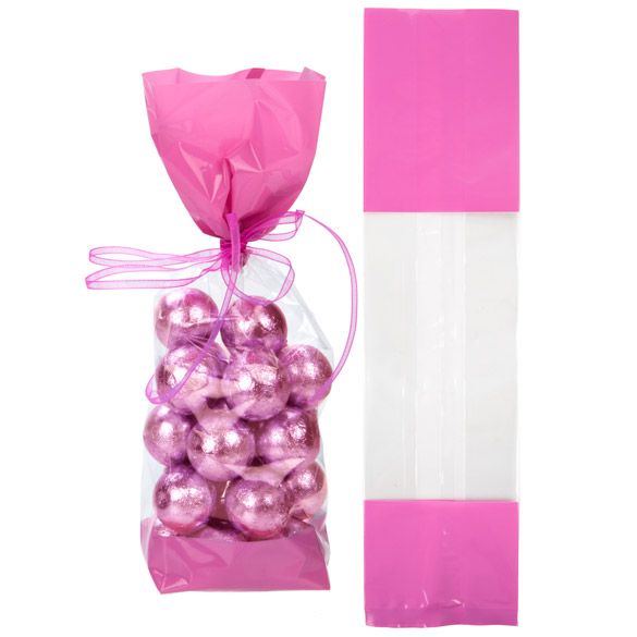 Your product will look pretty in pink. The G2PK is our printed side gusset bag that is designed with a pink top and bottom and measures 2 5/8" x 1 7/8" x 10 3/4". Ideal for romantic gifts, birthday parties, and special holidays like Valentine's Day, a splash of pink helps capture the mood. Fill this bag with chocolates, candy, taffy, chocolate-dipped pretzel rods, cosmetics, bath products, and more. Side gussets expand for bulky items and the sealed bottom provides extra strength. This 1.6 mil bag is made of laminated materials. The center of the bag is crystal clear for an exceptional presentation of your product. Add a ribbon or bow for an attractive finish. This bag can be heat sealed with a standard heat sealer.