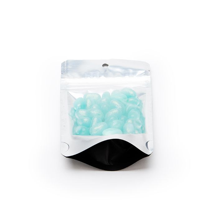 Stand Up Zipper Pouches make an attractive package for dry good products. Fill this 3 1/8" x 2" x 5 1/8" Black Zipper Bag with items like coffee, tea, candies, sea salts, and more. Clear front panel and silver interior offer a "high end" look at an affordable price. These bags hold 1oz/28g of product. Food safe.