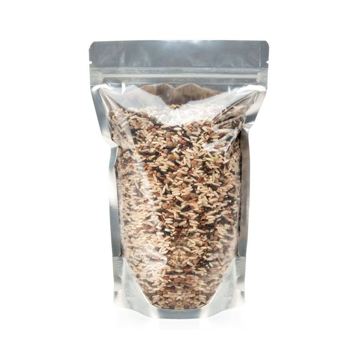 These popular Silver Zipper Pouch Bags offer convenience to your customers and barrier protection for your product. The outer dimensions of these pouches measure 5 3/4" x 3 1/8" x 9 1/16" and a capacity for 4-6 oz/113-170 g, A clear front panel shows off your inner contents. Package grains, chips, candy and more.