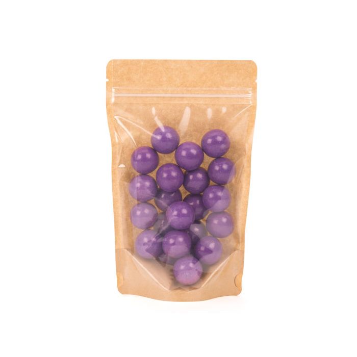 With a usable space of 4 3/4" x 2 1/2" x 6 5/8", this Kraft Stand Up Zipper Pouch is a popular choice for packaging dry good products. With a capacity of 4oz/113g (based on whole coffee beans), this pouch works well for tea, granola, nuts, spices, bath salts, and more. The self-supporting pouch has a laminated interior to keep products fresh. A favorite among natural products, this pouch features a clear front panel so customers to see your product before they buy. High barrier properties protect against oxygen and moisture, while zipper provides an airtight closure. Heat sealable.