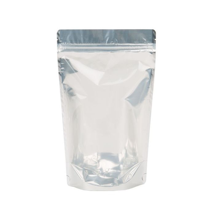 For this same bag with a hang hole, see ZBGB4H Our ZBGB4 Stand Up Zipper Pouch offers a sleek design to get your product noticed on retail shelves. This pouch has a black backing, silver interior, and clear front panel to display your product. At 6 3/4" x 3 1/2" x 11 1/4", this pouch holds 8-12 oz/227-340 grams. Ideal for dry goods such as coffee beans, grains, snacks, powdered mixes, and detergent. Food safe.