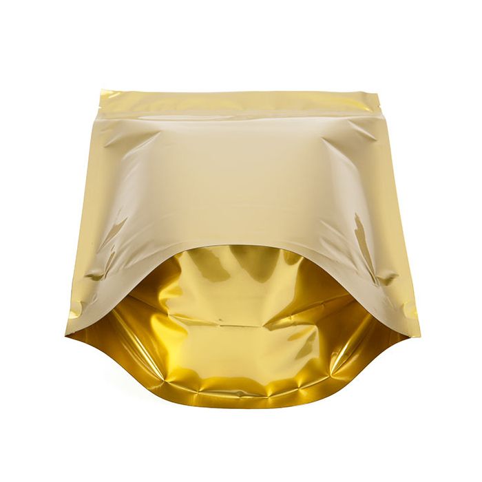 Stand Up Zippers Pouches have become the go-to design for flexible packaging. Our ZBGM4G Gold Metallized Zipper Pouches have the bonus feature of a higher barrier to protect against light, moisture, odor, and oxygen. That makes these 4 mil gold foil bags packaging stars on retail shelves. These 6 3/4" x 3 1/2" x 11 1/4" pouches have inner dimensions of 6 3/8" x 3" x 9 3/4" and hold 8-12oz/227-340g. Specialty products like coffee, gourmet popcorn and nuts, pistachios, banana chips, biscotti, and baked goods are optimal for this mid-level space. Stand up pouches expand when filled with product. An airtight zipper keeps products fresh after opening. Tear notches provide easy access when pouches are heat sealed. Smooth gold finish is easy to brand with added labels or a custom design.