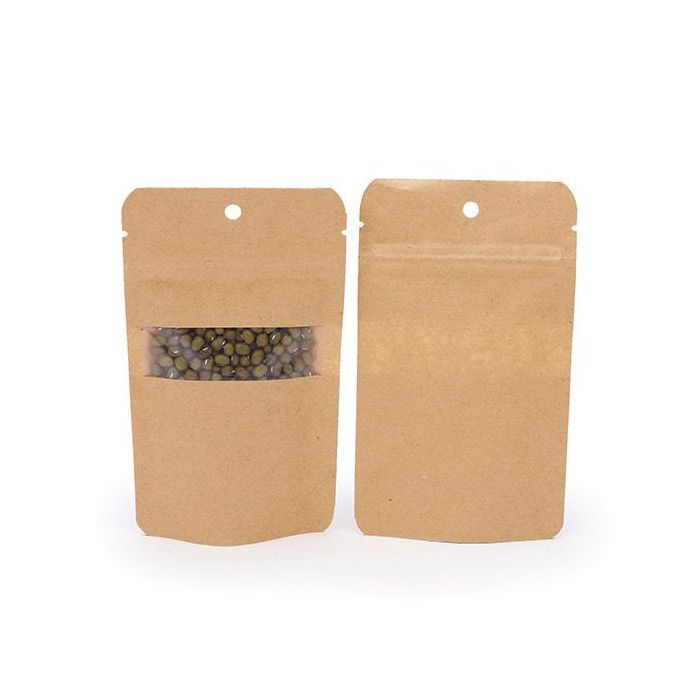 The natural feel of these Kraft Zipper Pouch Gusset Bags provide a handcrafted, singular experience. These 3 1/8" x 2" x 5 1/8" pouches can hold 1 ounce or 28 grams, perfect for sample vitamin packs or single servings of coffee. Specialty chocolates, sea salts, herbs, spices, or organic products are a great fit for these pouches. A laminated inner bag and high barrier protection keeps products fresh. These pouches are a home run when it comes to convenience. Tear-away notches and a resealable zipper allow easy access to contents. Bags can be heat sealed to close.