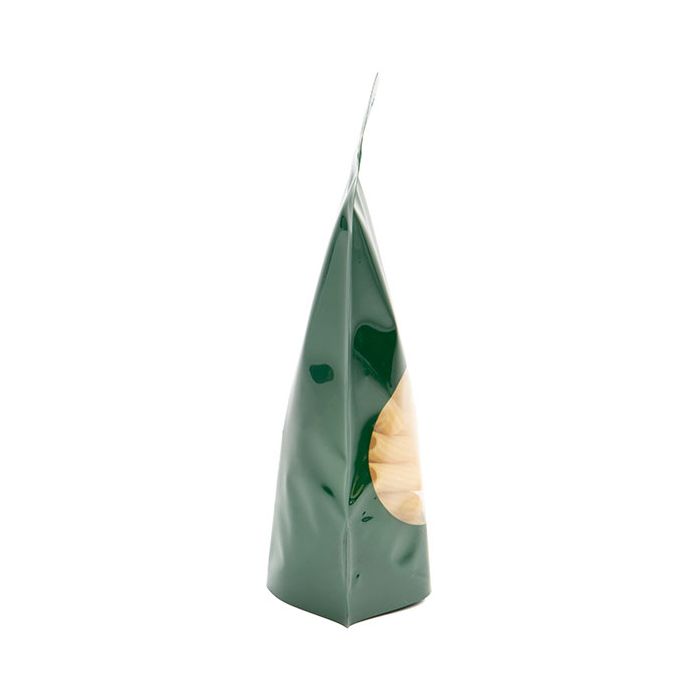 For this same bag without hang hole, see ZBGO7HG. This 5 7/8" x 3 1/2" x 9 1/8" self-supporting pouch in Hunter Green features an oval window that allows your product to be seen. ZBGO7HGH features a strong resealable zipper to lock in freshness and tear away notches for convenient access when heat sealed. This pouch is food safe and holds 6-11 oz of dry goods.