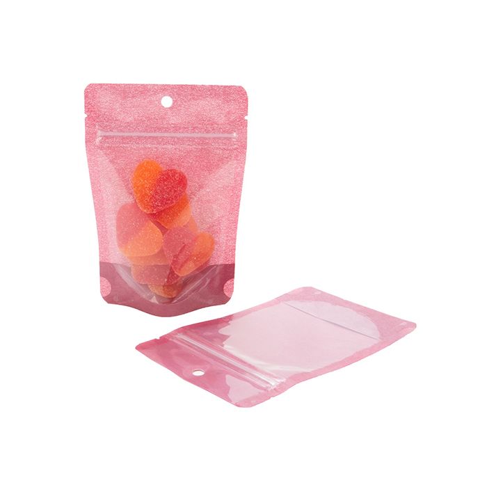 Create a stylish look with our rice paper stand up pouch in harvest cranberry. Our ZBGR2HR pouch has a rich cranberry color and a clear front panel to show your product. Package coffee, sprinkle mixes, cookies, spices, and more. This pouch measures 4" x 2 3/8" x 6" and holds 2 oz/57 g. Includes tear notches and a resealable zipper. Heat sealable.