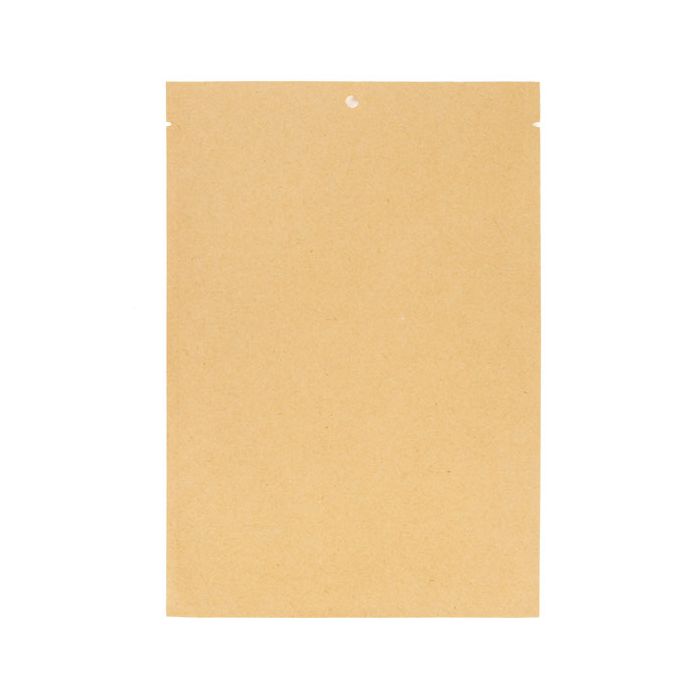 When you need a natural vibe for your food packaging, look no further than our Kraft Flat Heat Seal bags. KHS69 has inner measurements of 6" x 9" and works great for packaging items like dried fruit, baked goods, banana chips, and ground coffee. This pouch offers an attractive presentation for healthy snacks and is 100% compostable. The pouch is made of 50gsm Kraft paper and is lined with a 1.6 mil plant-based PLA film making this bag 4.0 mil thick. For a secure closure in the retail setting, this pouch can be heat sealed and features a round hang hole. The usable space under the tear notches is 6" x 8 1/16". Get a more customized look with a printed design created for your product. For more information, see our custom packaging page.