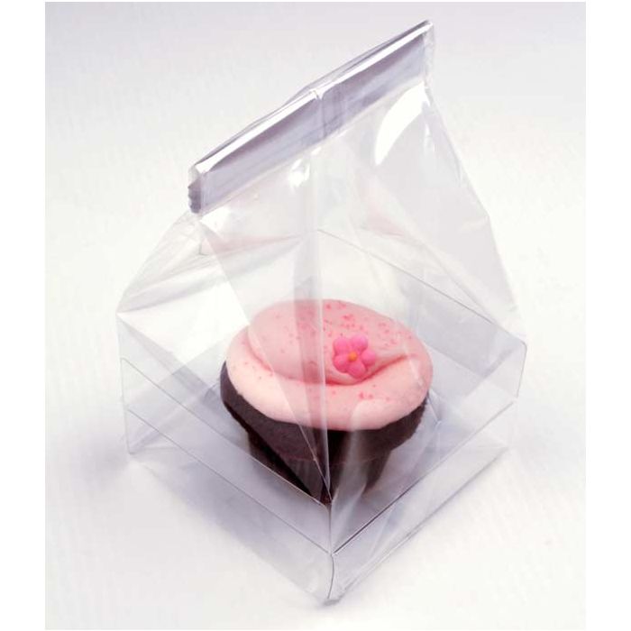 Give your solo cupcakes the special attention they deserve with these clear cupcake bags with inserts. Our CBG1 cupcake set measures 4" x 4" x 7" and is perfect for holding a single cupcake or muffin. This set includes a lunch sack style gusset bag and a plastic insert for stability. Clear stickers are included for a secure closure.