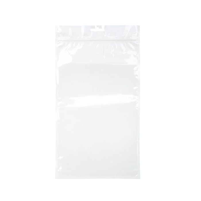 Our hanging zipper barrier bags are designed for the retail setting. The HZB8 bag measures 7" x 12" and has clear front and back panels for a full viewing of your product. This 4.0 mil smell-proof bag is formulated to hold in scents and flavors. Package items like jerky, dried fruit, toffee, powdered mixes, and bath balms. Features include an airtight zipper with great resealability and convenient tear notches. Your product is sure to make a splash in this clear packaging designed with a round hang hole for an easy hanging display. Bags come pre-opened for quick filling and can be heat sealed for a tamper-resistant closure. Food Safe.