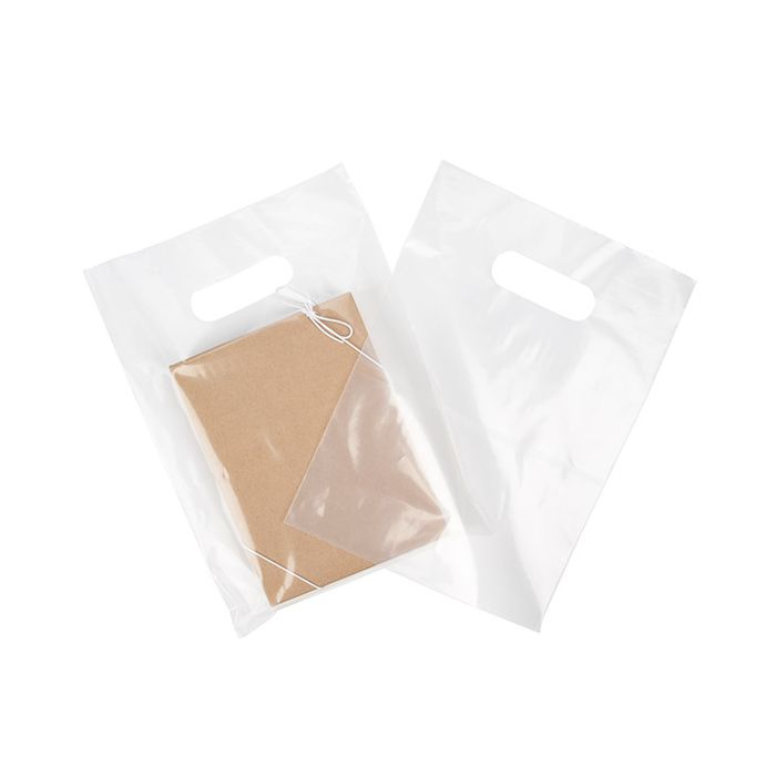 This clear reusable shopping bag measures 9" x 12" and is great for packaging smaller items like books, artwork, crafts, toys, and small clothing items. It is made from 2.25 mil LDPE material with 20% recycled content, complying with single-use bag ban laws. A die cut handle makes this bag easy to hold for customers. The clear material allows the contents inside to be seen. Brand using labels or stickers.
