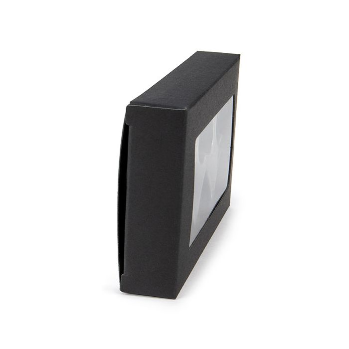 Black Kraft Artisan Candy Box Sets are sure to make your chocolates, wax melts, and more stand out! The CNDYH274B set comes in a pack of 25 and includes black kraft outer boxes and crystal clear inner thermoform trays. The windowed outer box measures 2 3/4" x 13/16" x 4 1/16". The attached PET window allows for treats and crafts to be seen while keeping items contained and protected. The inner thermoform trays come with 6 heart shaped cavities measuring a 7/16" depth and can withstand temperatures up to 149 degrees Fahrenheit.