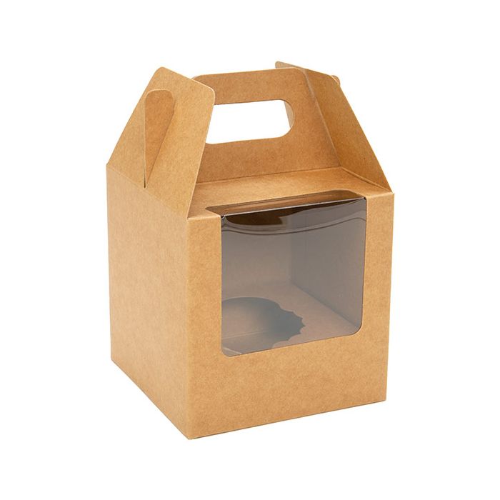 Packaging specific goods may sometimes require a very unique container, and pastries are no exception. Our 4" x 4" x 4" kraft cupcake box is specialized to securely fit standard sized cupcakes with an insertion that holds your cupcake in place. Although the base design is fit for cupcakes, other pastries look great displayed in these boxes as well. A crystal clear window is featured on the front of every box giving your customers a better idea about what their taste buds are already telling them.