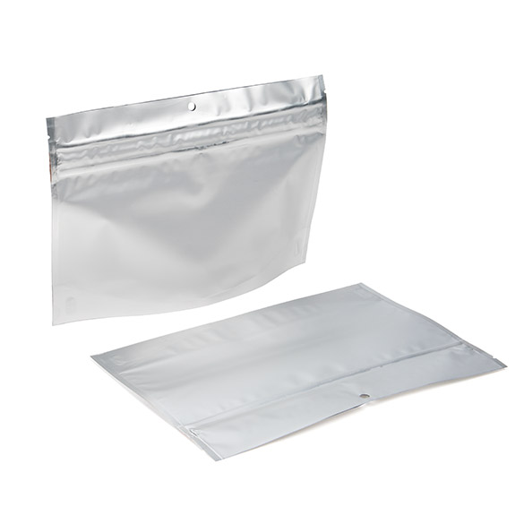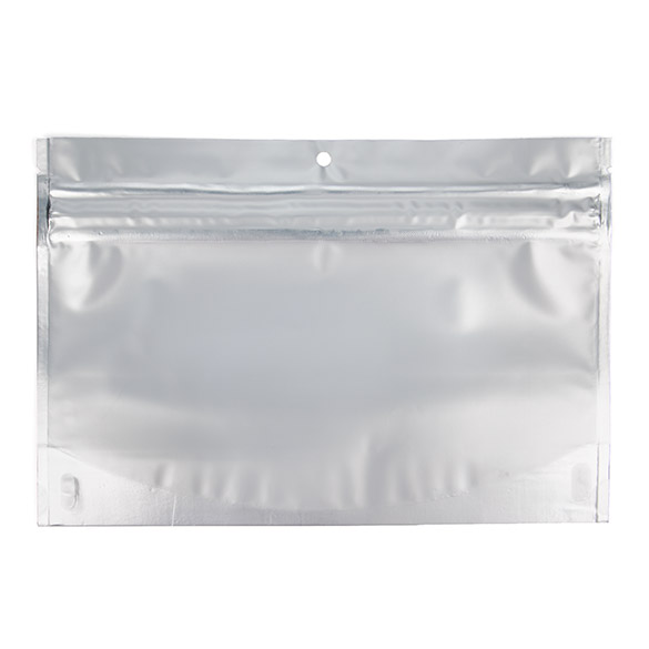 Matte Silver Child Resistant Pouch Bags, 9" x 2 7/16" x 6" (100 Pack) - DISCONTINUED