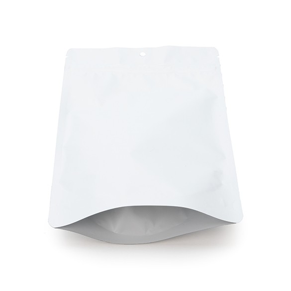 Take your food packaging to the next level with our Metallized Stand Up Zipper Pouches. ZBGM7MWH is our 5 7/8" x 3 1/2" x 9 1/8" pouch in Matte White and holds 6-11 ounces (170-312 grams). Fill this pouch with cereal, rice, cake/brownie mix, bath salts, pet treats, and more. The self-supporting pouch design expands when filled and sits upright on retail shelves. The metallized material is food safe and offers a high oxygen, aroma, moisture, and light barrier. Keep freshness, aromas, and flavors inside your package. A resealable zipper prolongs freshness after opening. When heat sealed, tear notches provide easy access to your product. The smooth white finish works well with added labeling or a printed custom design.
