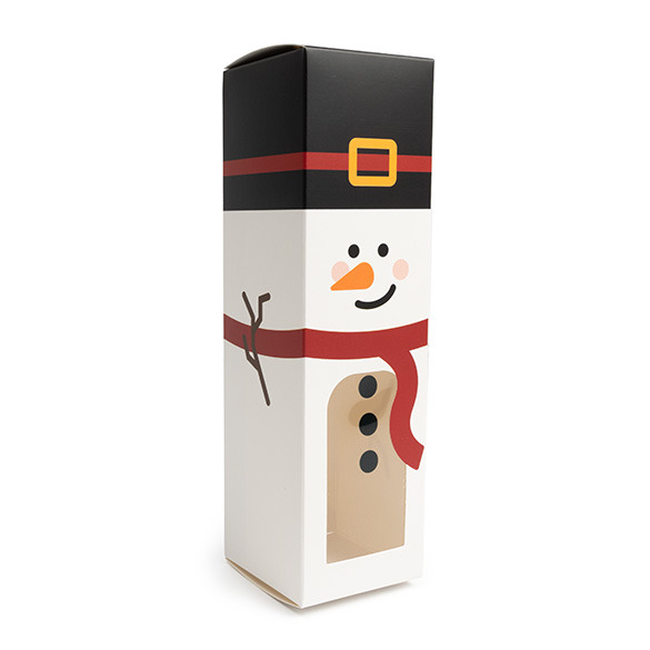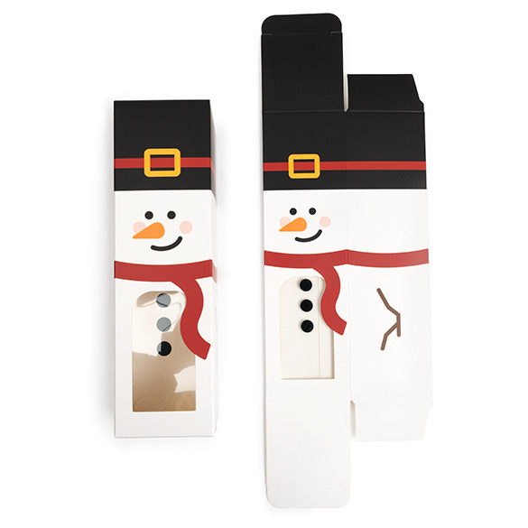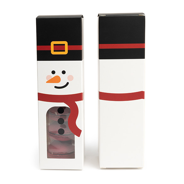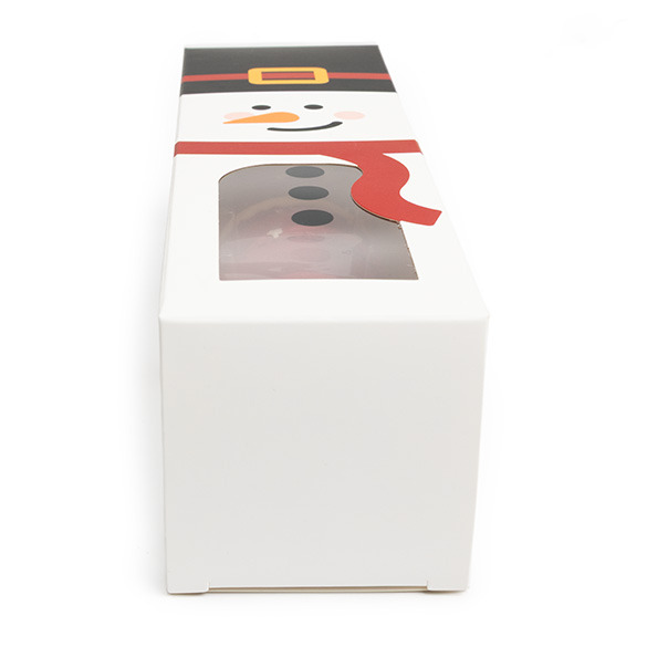 Add a flurry of festive charm with Snowman Paper Boxes with Windows. Measuring 2 1/4" x 2 1/4" x 8", SKB228SN can easily hold baked goods, crafts, jewelry, candy, cosmetics, and a variety of other items and products. These unique boxes are made of food safe paper materials that are 300gsm thick. Each box features a printed Snowman design on all sides and features a clear PET window on the front panel to give a sneak peek of its contents. For convenience in shipping and storage, these boxes arrive flat. To assemble, simply form along the soft fold lines. Whether for holiday gifts, boutiques, bakeries, or winter parties, these snowman boxes are sure to warm hearts all season long!