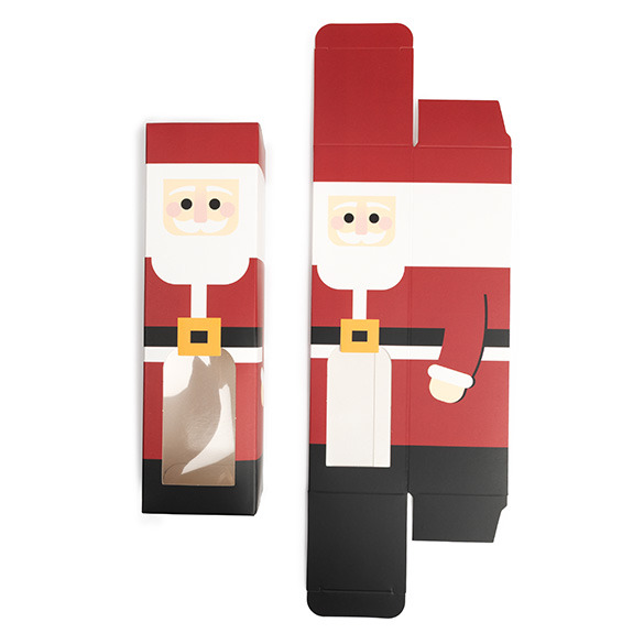 Add a sprinkle of holiday magic to your packaging with Santa Paper Boxes with Windows. Measuring 2 1/4" x 2 1/4" x 8", SKB228S can easily hold delicious baked goods, candy, fun crafts and more. Created from 300gsm food safe paper materials, each box comes with a clear PET window located on the front panel to offer a sneak peek of its contents. The adorable Santa design comes printed on all sides of the box and will be sure to stand out. For ease in shipping and storage, these boxes arrive flat but can be assembled by forming along the soft fold lines and tucking in the end tabs for a closure. Bring joy to every holiday gift, boutique, bakery, party, or any special occasion with these enchanting boxes!