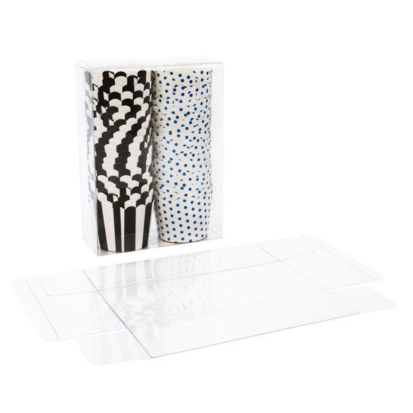 Crystal clear packaging is a great way to call attention to your product. FB53 is our 4 7/8" x 2" x 6 5/8" box and is ideal for packaging two dozen sets of A6, 6 Bar envelopes and cards. This box has a depth of 2 inches. Package greeting cards, invitation, crafted creations, journals, and more. Made from 12 mil thick PET material for exceptional clarity and durability. Assemble these boxes by shaping along soft creases and secure with interlocking tabs. This product includes clear round stickers for a tamper-resistant closure to keep your product in excellent condition on retail shelves. Add a stretch loop or ribbon to this box for an attractive finishing touch.