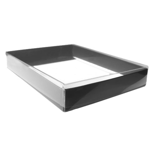 Clear Lid Boxes with Black Paper Base, 5 7/8 x 4 1/2 x 3/4" - A2/5.5 Bar, 100/Ctn