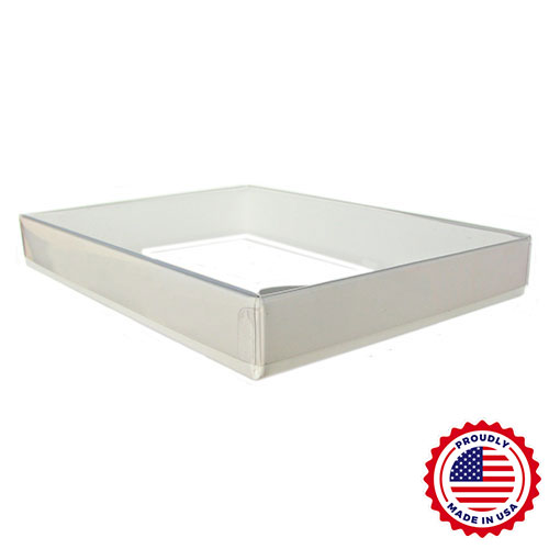 Clear Lid Boxes with White Base (5 7/8 x 4 1/2 x 1", A2/5.5 Bar) are proudly American-made and hand-assembled. They arrive fully assembled and ready to fill—not flat-packed—so you save time and ensure a polished look.