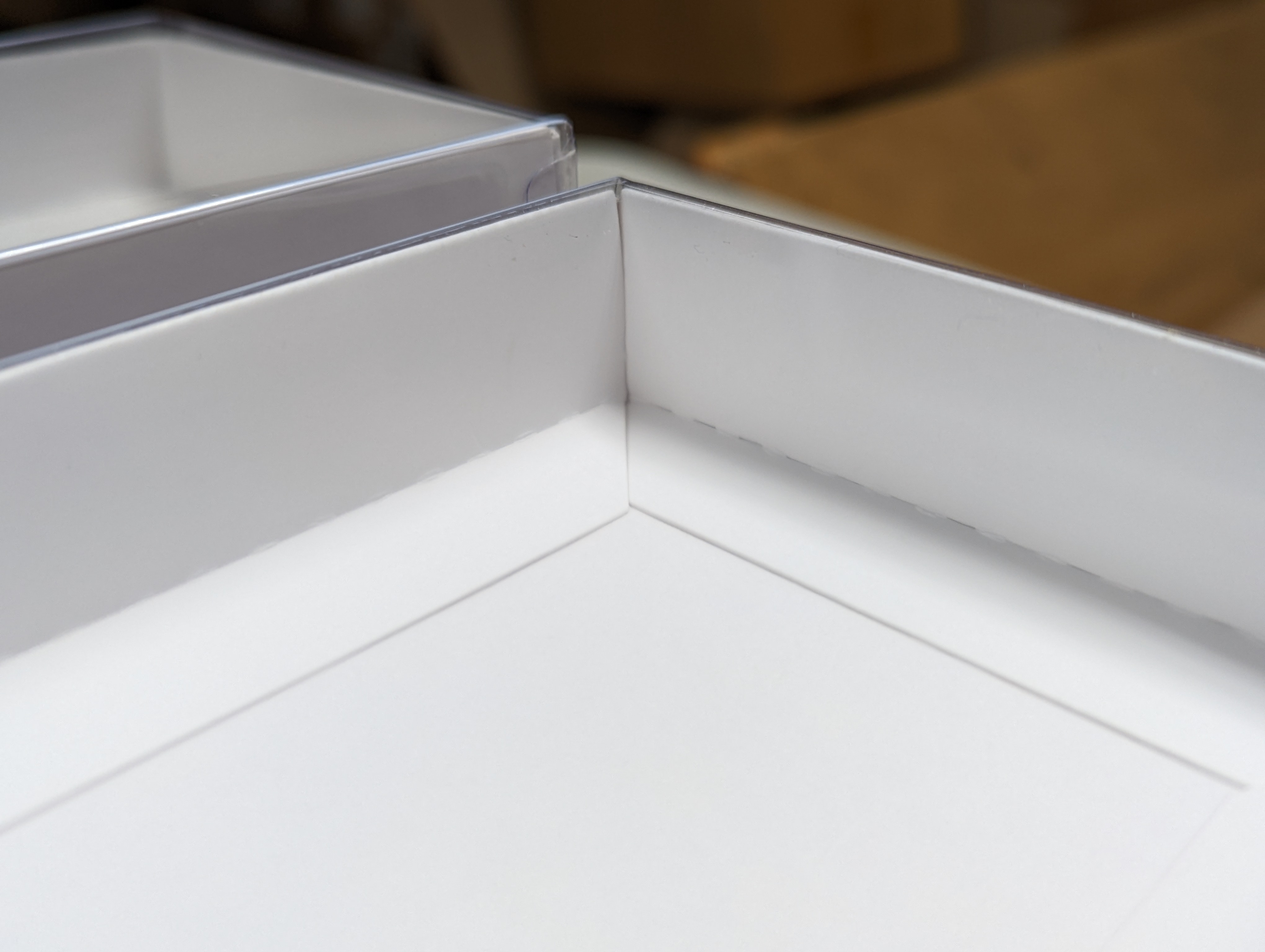 Clear Lid Boxes with White Base (5 1/4" x 3 3/4" x 1", A1) are proudly American-made and hand-assembled. They arrive fully assembled and ready to fill—not flat-packed—so you save time and ensure a polished look.