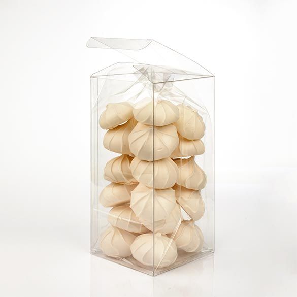Add a touch of class to your product presentation with our crystal clear soft fold boxes. FB57 measures 4" x 4" x 8" and works well for candy, snacks, crafts, beauty and bath products, collectibles, and more. This 12 mil box is made of durable PET material and is food safe. Assemble by folding along soft fold lines and secure with interlocking tabs. For a theft-resistant closure, clear round stickers are included with this product. Boxes ship flat to save on shipping costs.