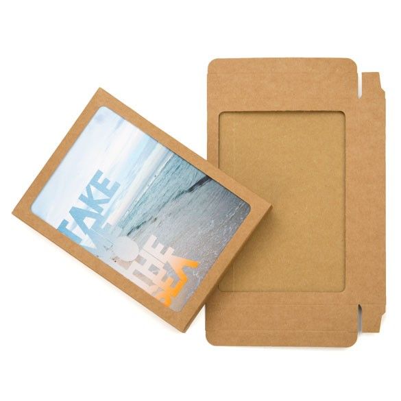 Show off colorful cards and photos with these Kraft Paper Window Boxes. WKR267 measures 4 7/8" x 7/8" x 6 5/8" and has cut-out window for an open-air display of your product. Ideal for textured or embellished cards. Inner window dimensions are: 4 1/16" x 5 13/16", A6. Stickers not included.